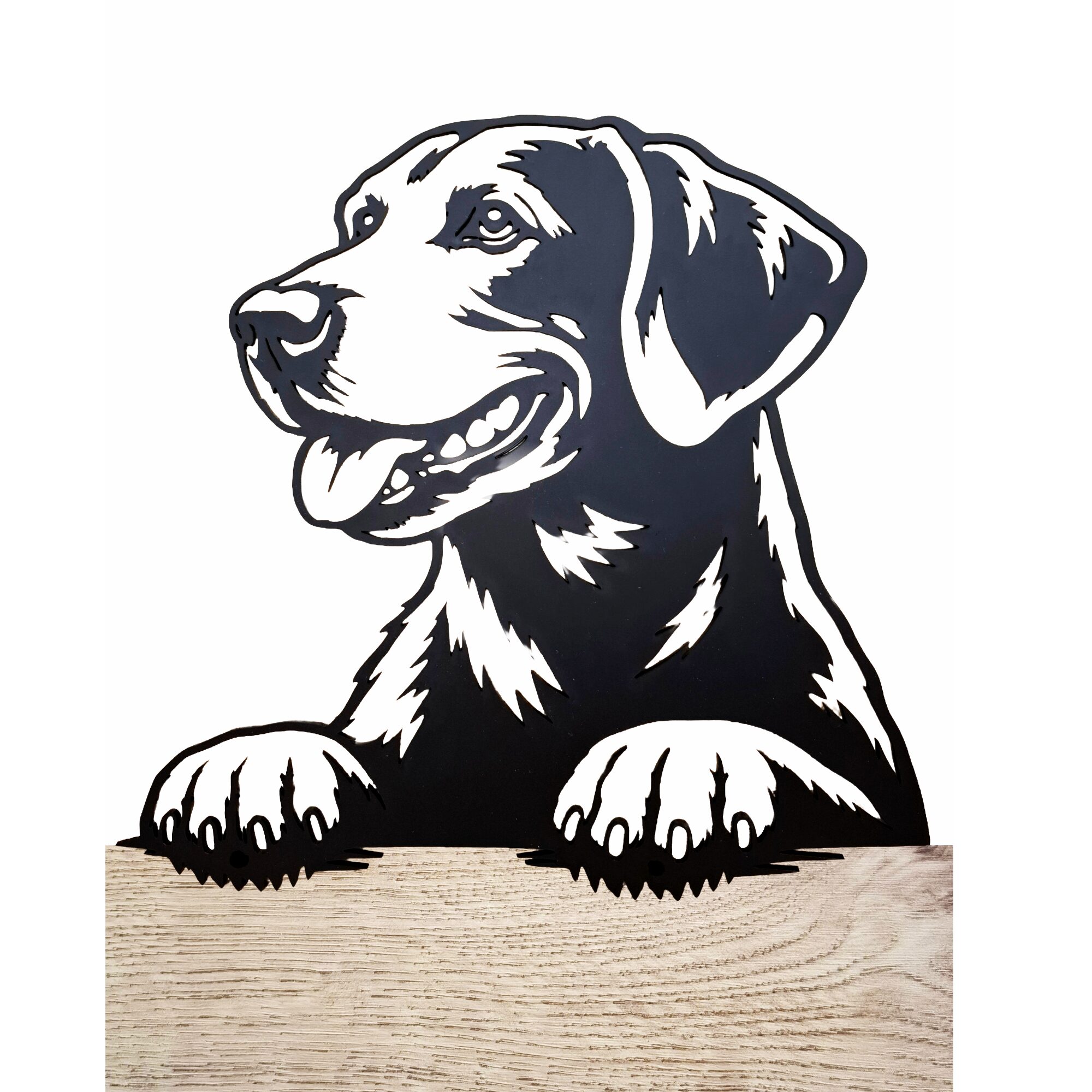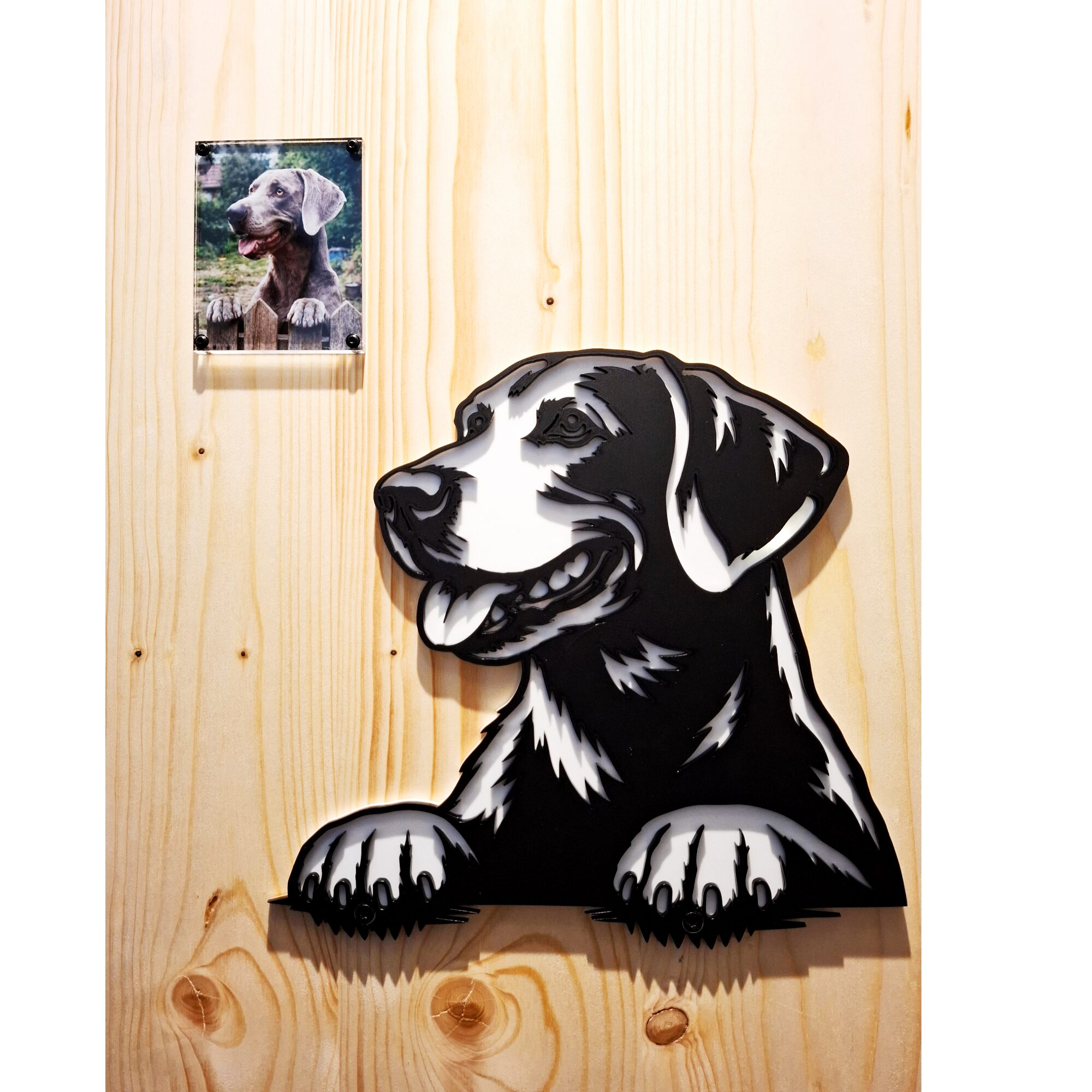 Dieses personalisierte Hundeportrait aus Acryl zeigt das charakteristische Konterfei Ihres Hundes in einer klaren, grafischen Silhouette.