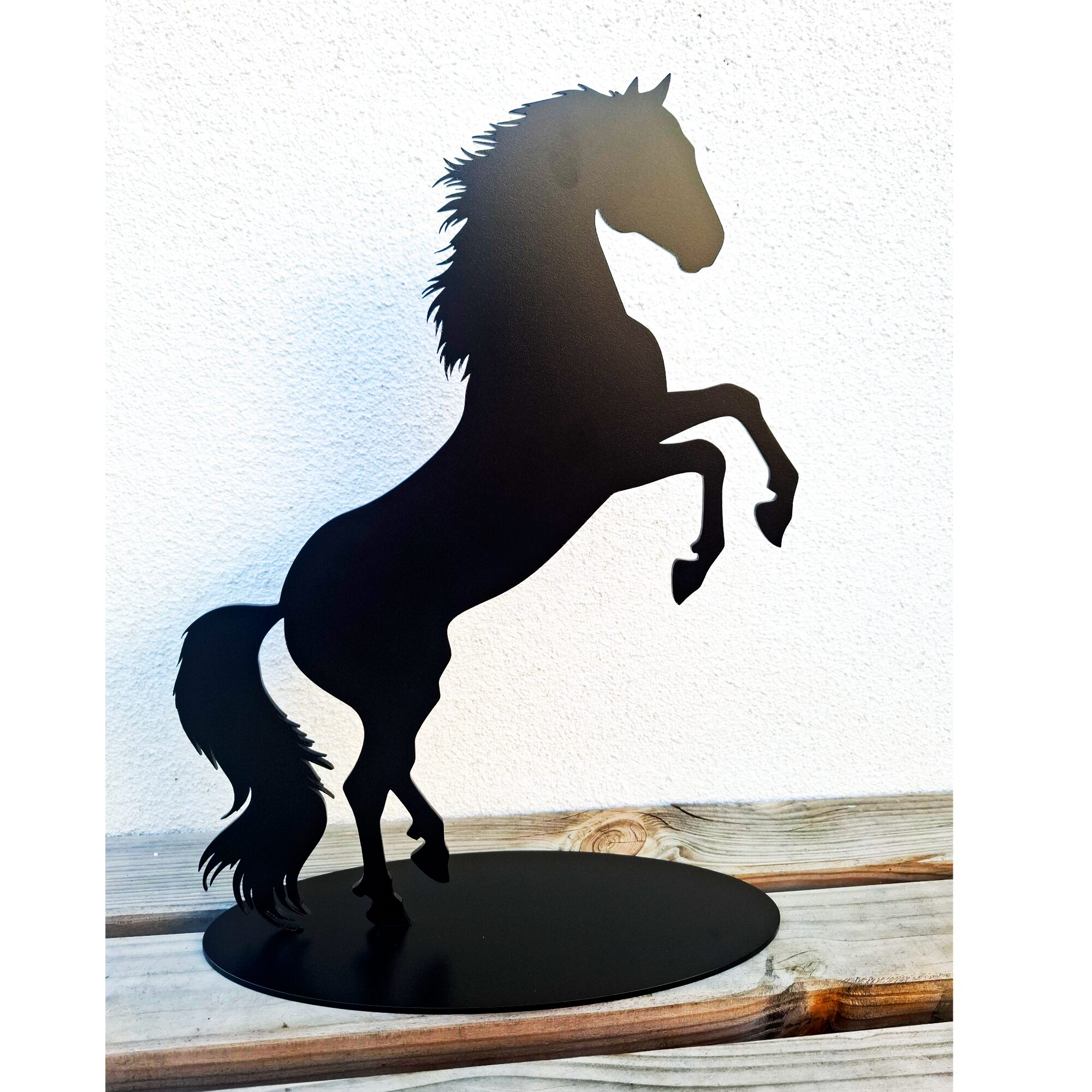 Diese Pferd Dekofigur aus Metall ist ein dekoratives Gestaltungselement für Garten, Hof, Eingangsbereich oder Innenräume.