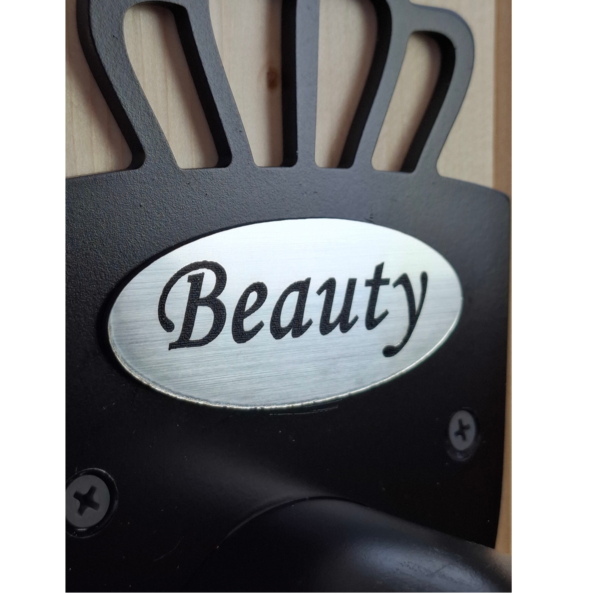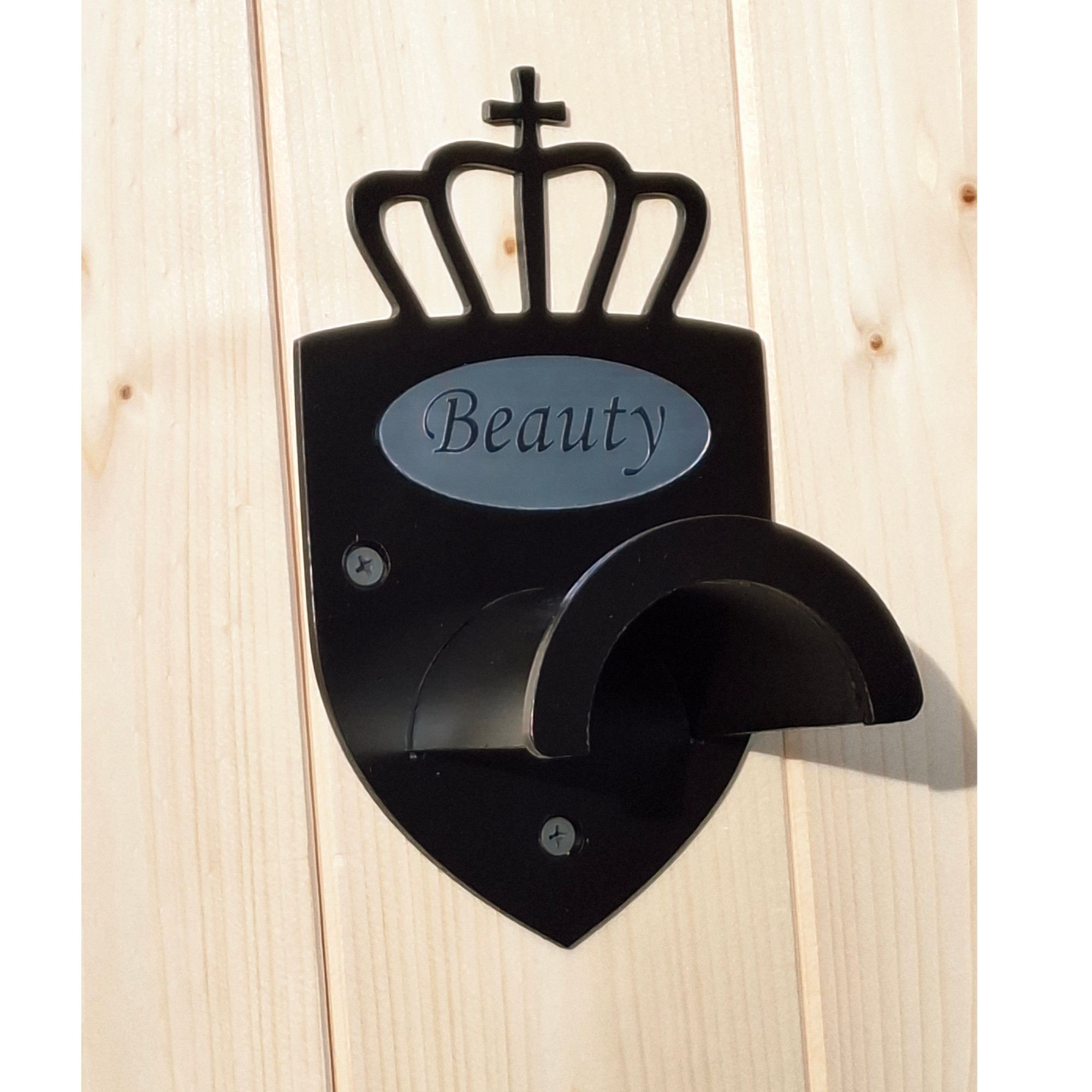 Der verwendete Farbton RAL 8022 (Schwarzbraun) wirkt je nach Beleuchtung schwarz, erzeugt jedoch durch den Braunanteil eine sehr exklusive Optik. Die Edelstahlplakette wird mit Ihrem Wunschnamen graviert und macht den Trensenhalter zu einem individuellen Unikat.